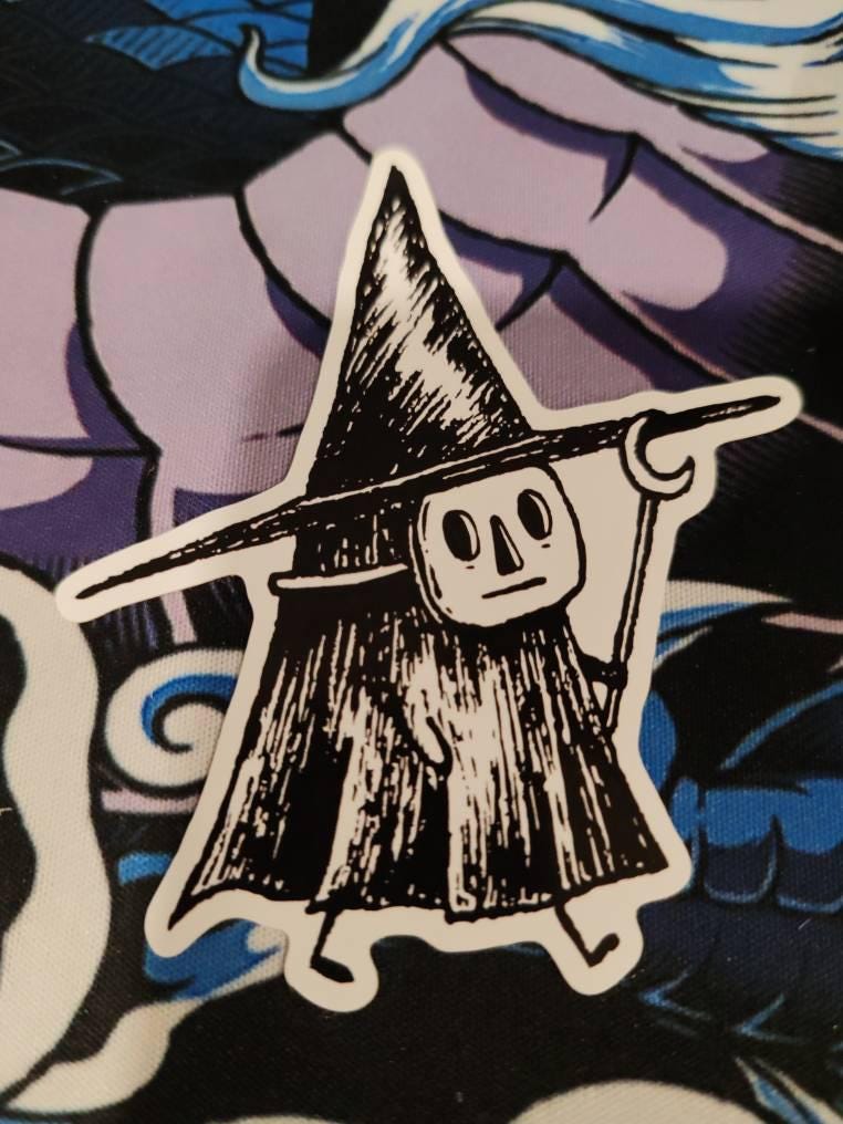 Sticker featuring a tiny witch spirit, from my original pen and ink artwork.