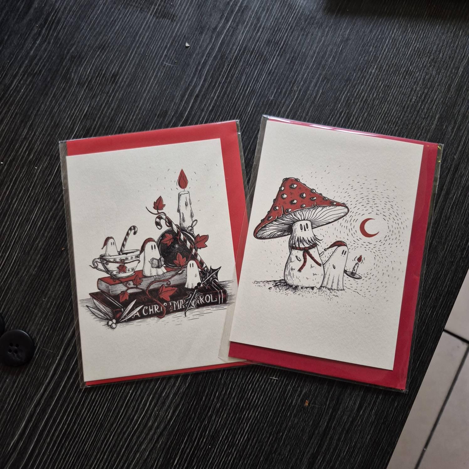 Available as a single card, a set of five matching cards, or a set of five different ghostie Christmas cards.