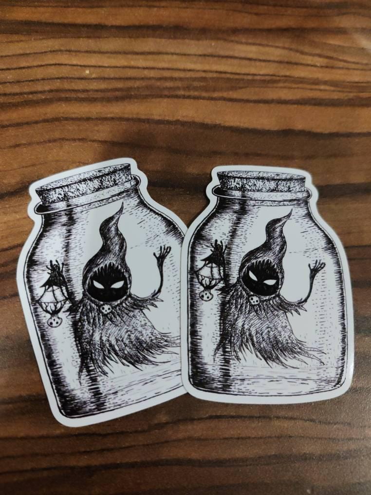 You caught a Poe in a bottle! This may lead to something good... A little spook to keep you company, wherever you decide to stick it, from original pen and ink artwork by Jon Turner