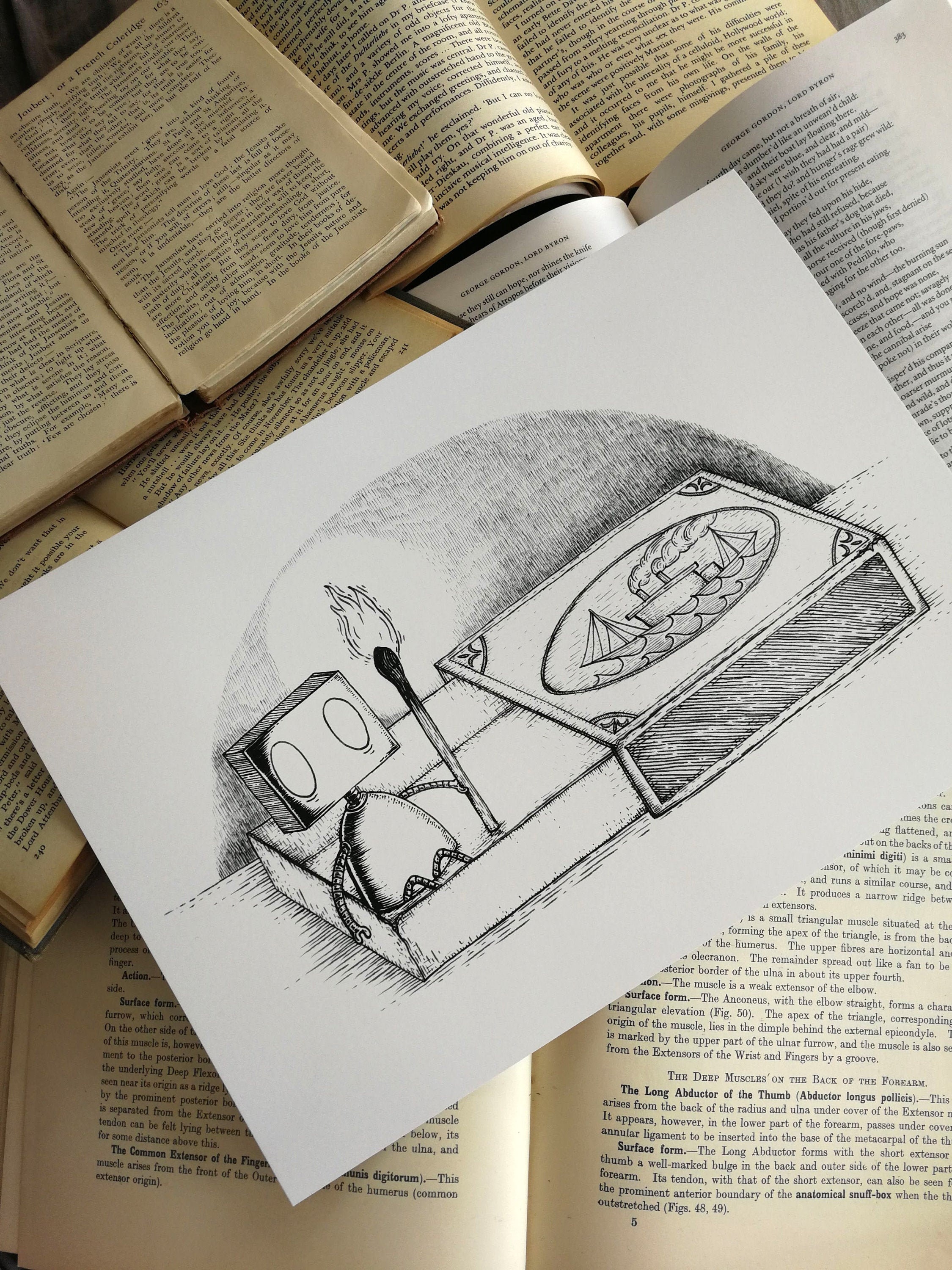 Digital print on smooth heavy silk 300gsm card; black ink on a white background, available in 8x10 inch or A4 (21x29.7cm) size. Signed.