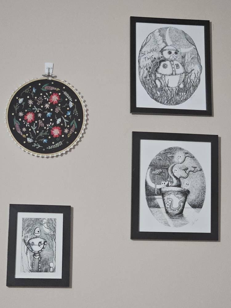 Looks great and seller included some cute stickers and another piece of artwork. Great experience!
