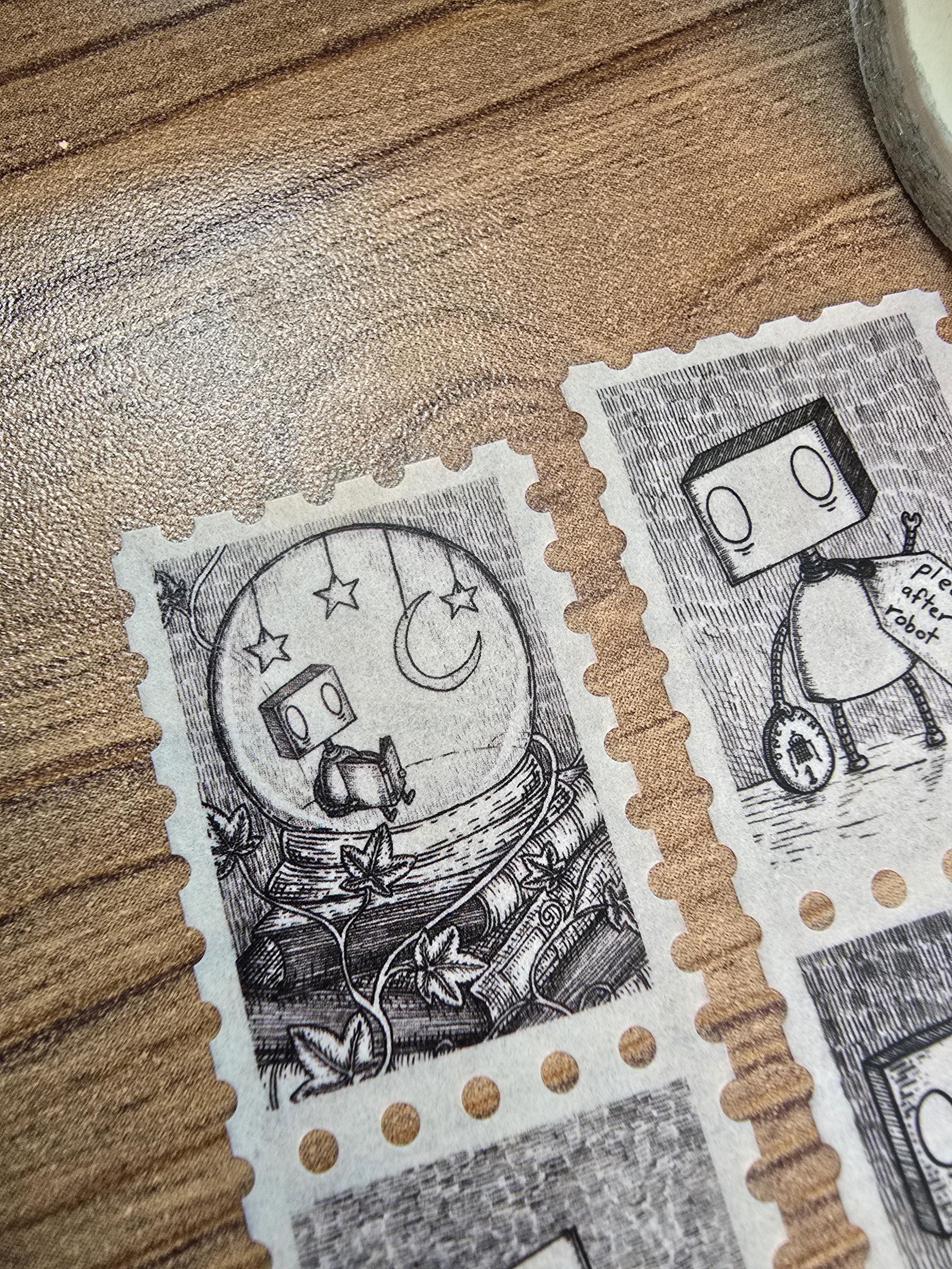 This listing is for one design, but you can also buy it as a pair with my second robot-themed tape, featuring a different ten designs in landscape format.